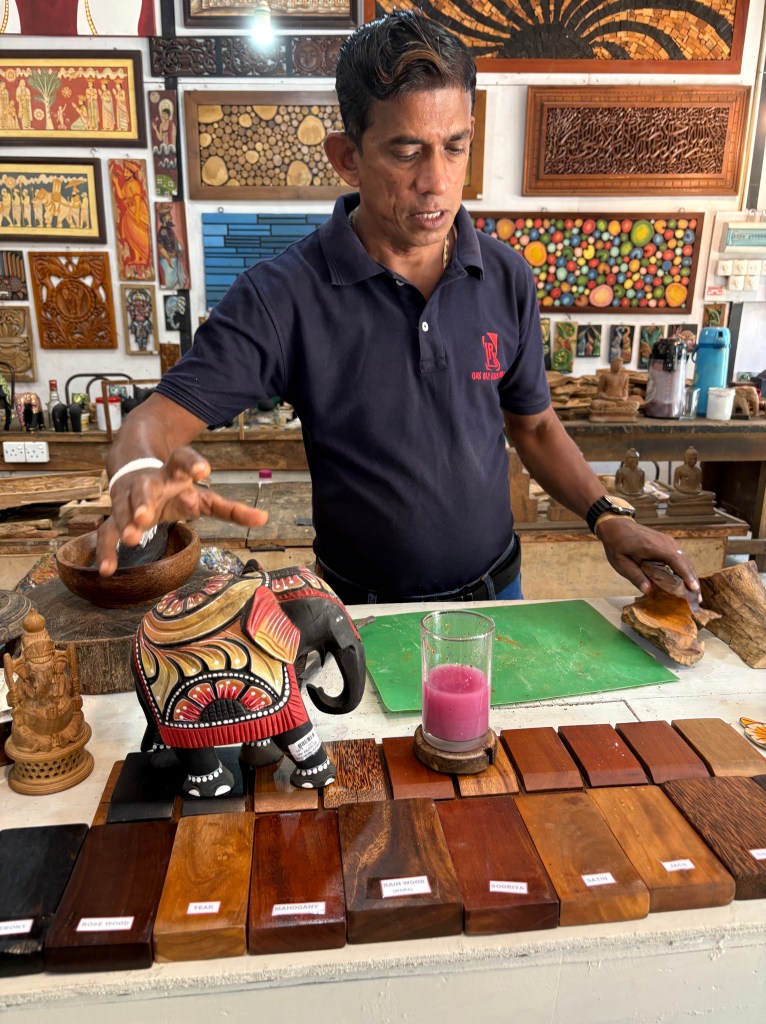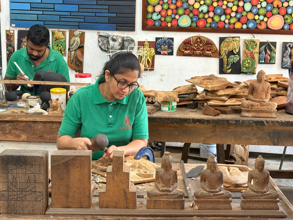 Vidare för att titta på tillverkning av batik och träsnideri:
