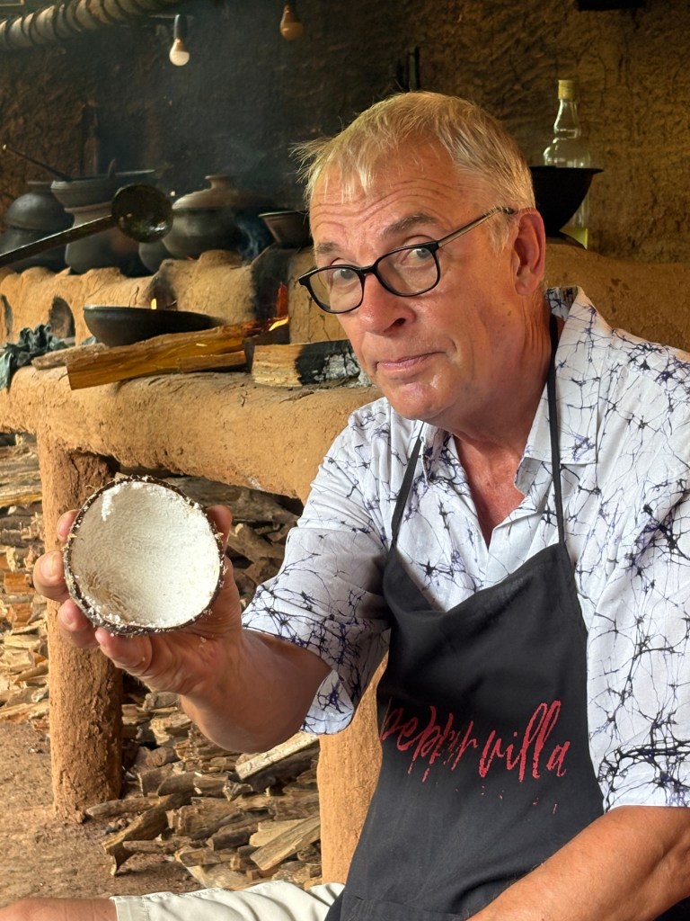Tillsammans med våra värdar lagade vi en fantastisk lunch. Förutom de råvaror som vi köpt användes även familjens egenodlade grönsaker och kryddor som t.ex. peppar .