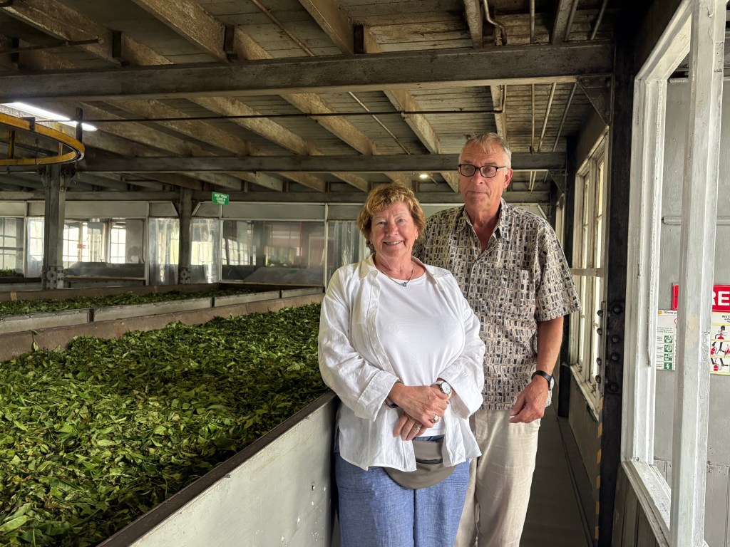 Runt omkring Nuwara Eliya breder tefälten ut sig. Så på vägen hit besökte vi en tefabrik där vi fick en guidning med provsmakning och inköp av beställt te till Karin, Olles syrra.