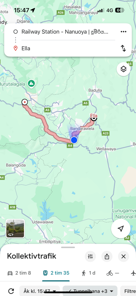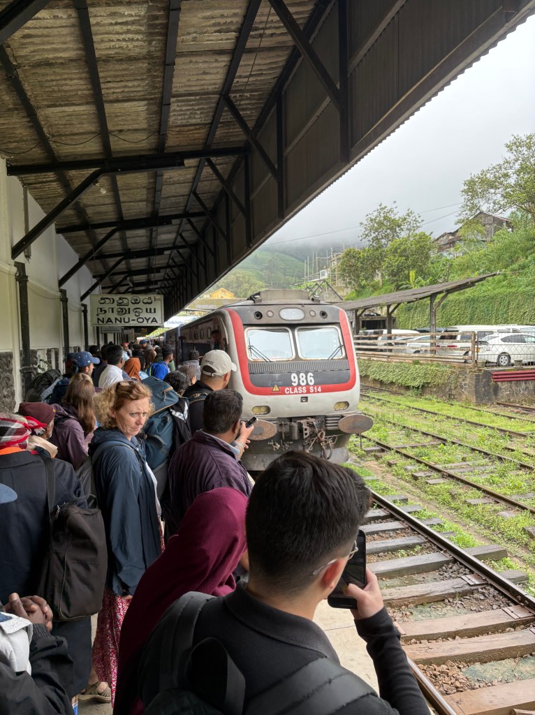 Sen var det dax för tågresa mellan Nuwara Eliya och Ella. Tåget skulle gå 13.09 och det var mycket folk på stationen. Lätt kaos! ” Det är som det brukar vara ” sa vår guide. ” Tåget kommer när det kommer”