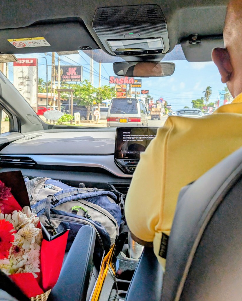 P.S. Att det händer en massa på själva bilresorna mellan våra olika mål är ju självklart. Som att vi kör om en motorcykel där pappan (som har hjälm) skjutsar sin fru (utan hjälm) som under färden ammar sin lilla baby.