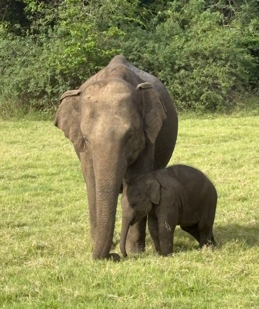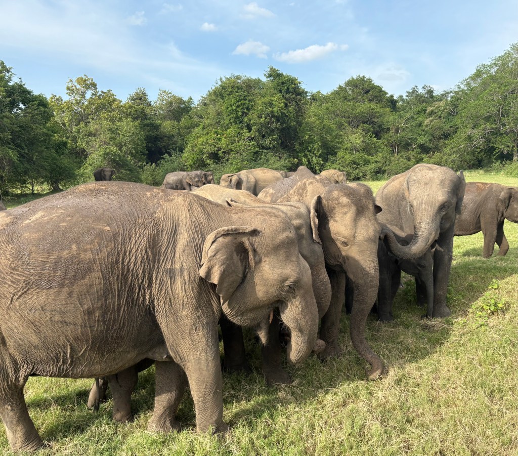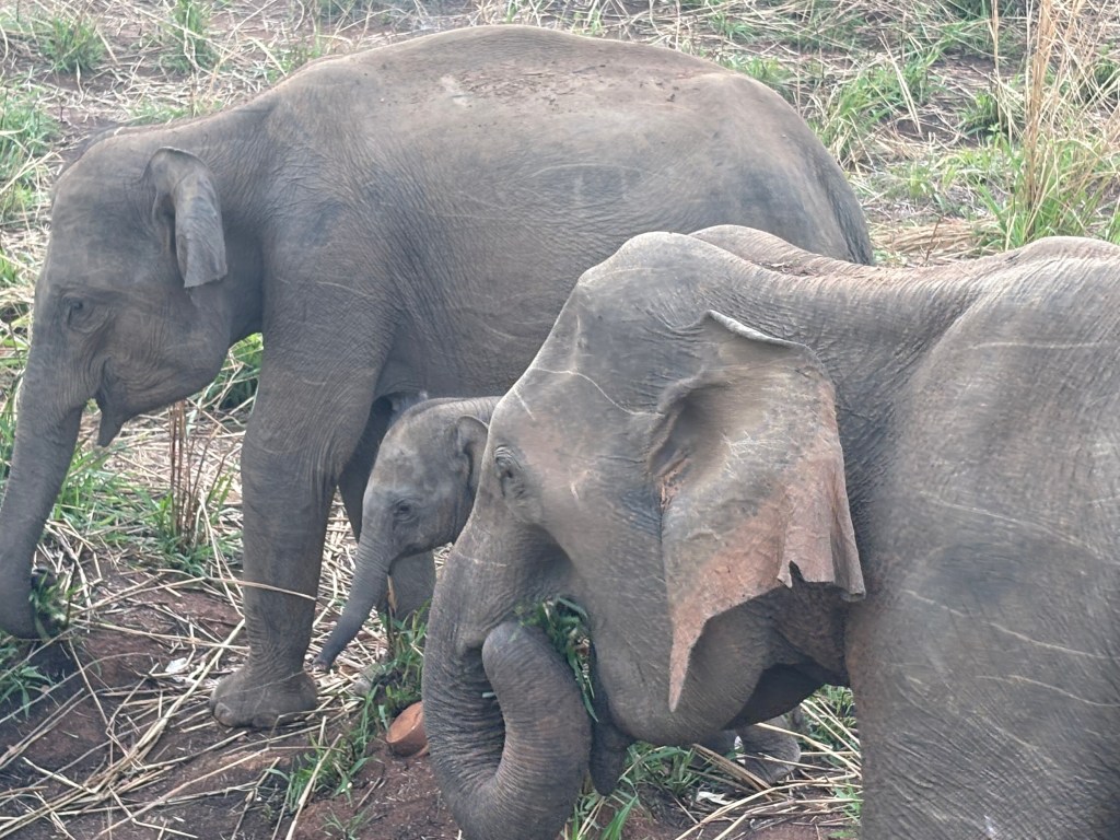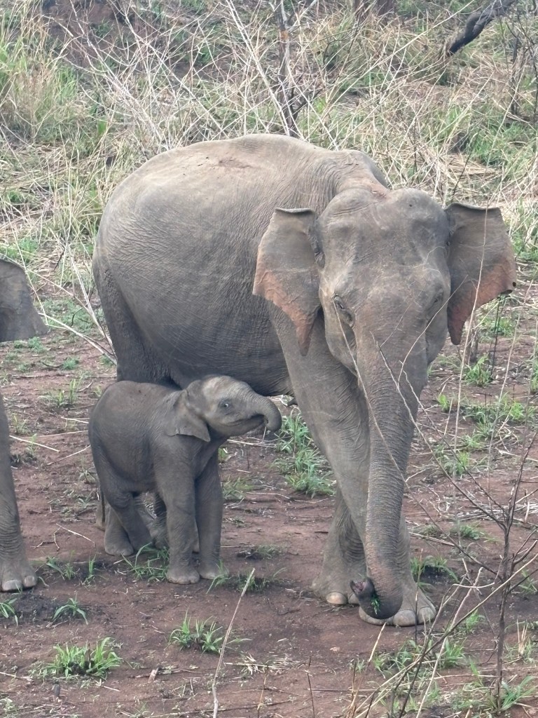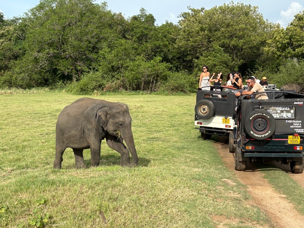 Men så plötsligt var de där! Och inte bara en! Säkert 50-70 elefanter. Så nära att när en av hanarna vill gå över vägen fick vår jeep snabbt köra undan. Lite sur verkade han och brölade åt oss.