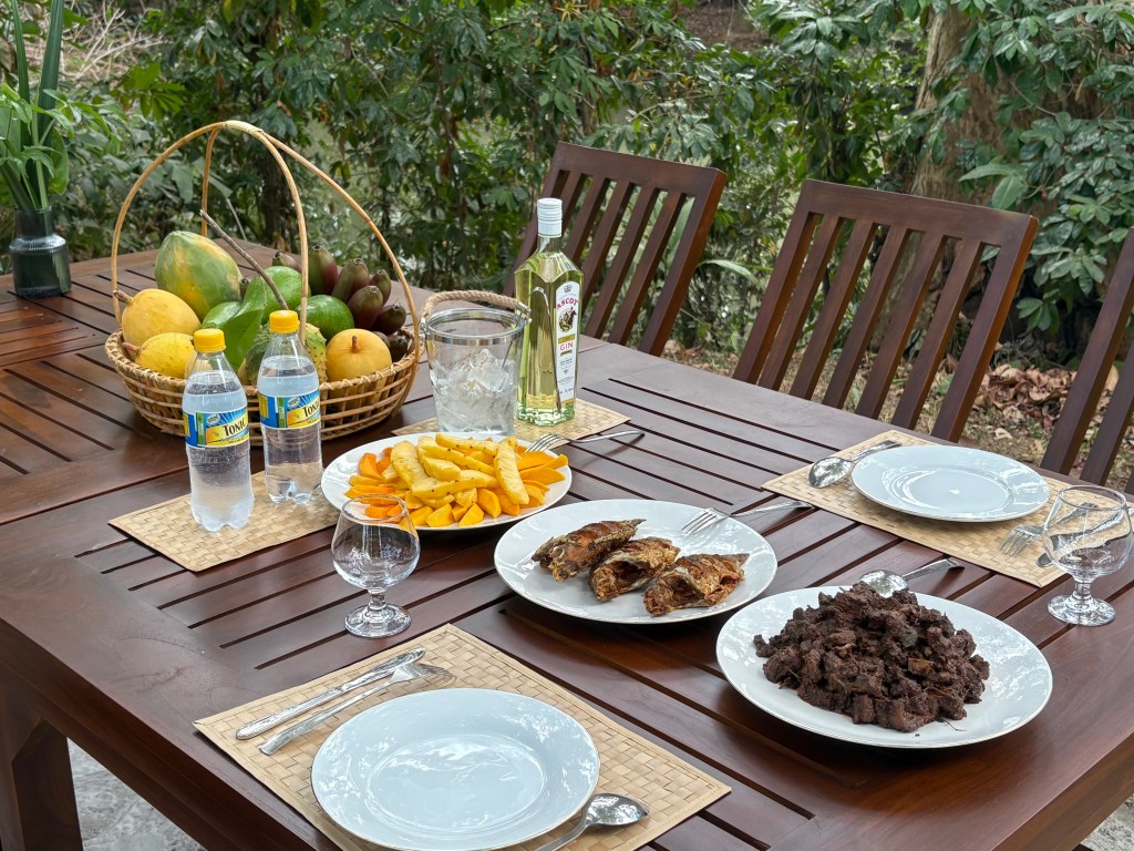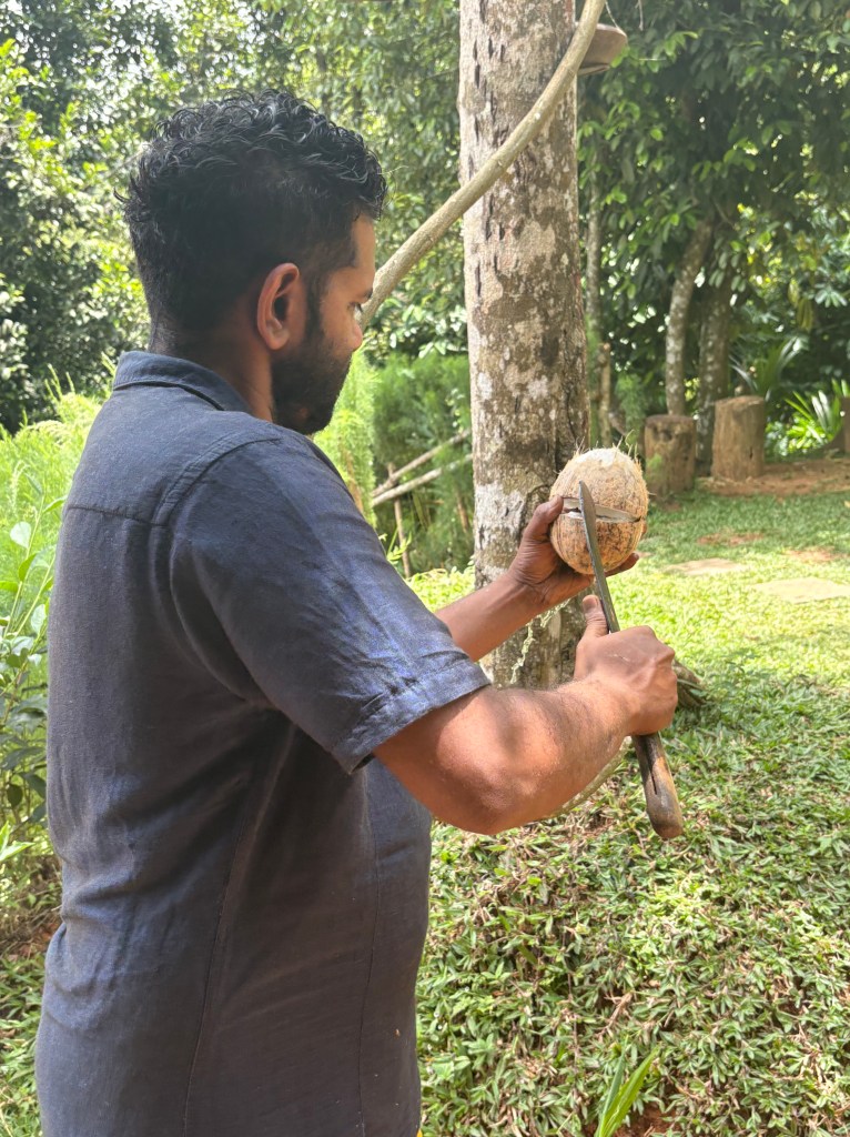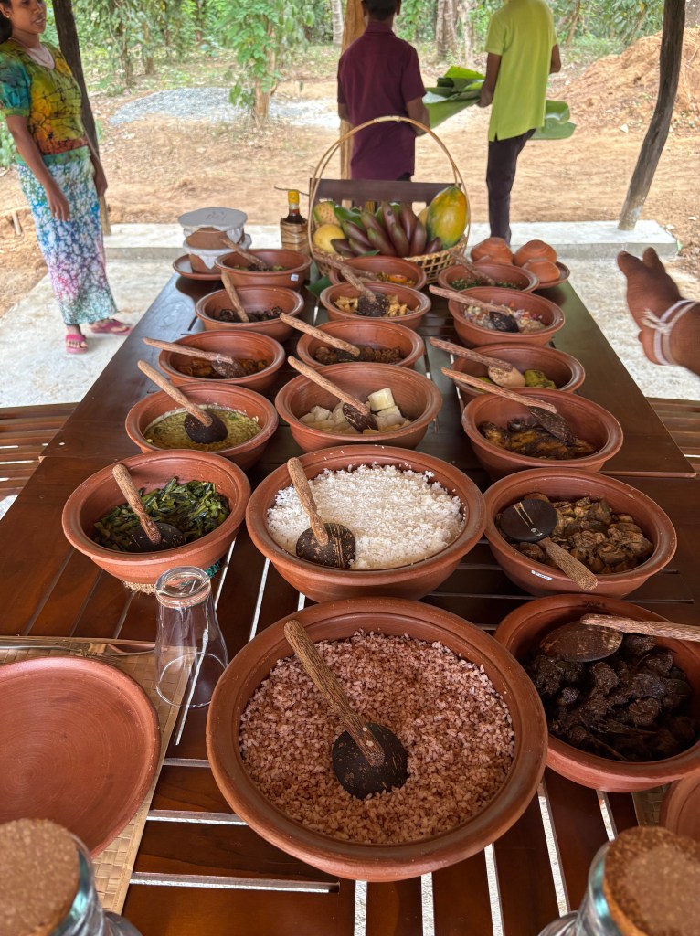 Med tuk-tuk åkte vi vidare till vår guide/ chaufför/väns farm för att bli bjudna på en överdådig lunch. Chami köpte 2019 en bit djungel som han håller på att förvandla till en farm. I framtiden ska han ta emot turister som först ska få skörda grönsaker och frukt för att sedan tillaga och äta. Än är det mycket kvar att ordna med, men han ville bjuda oss för att vi skulle få en inblick i hans dröm. Och vilken lunch vi blev bjudna på !