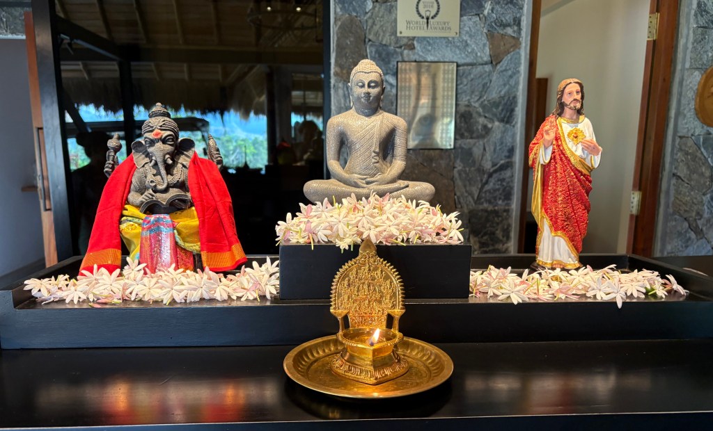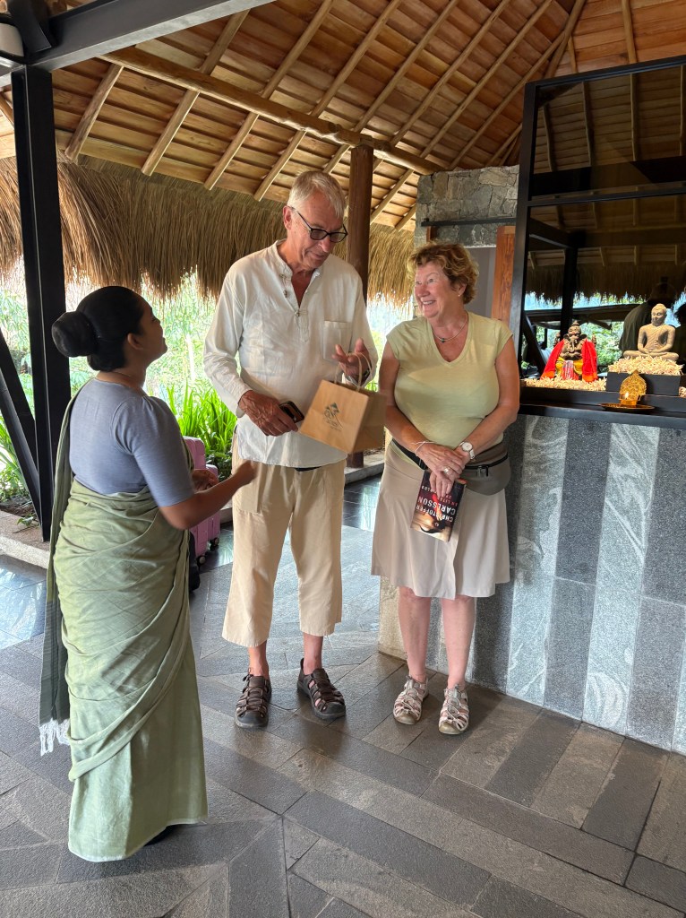 När vi lämnade vårt fina hotell 98 Arches blev vi först välsignade så att resan skulle gå bra. Vi fick välja gud, Olle valde Ganesha och jag Buddha.