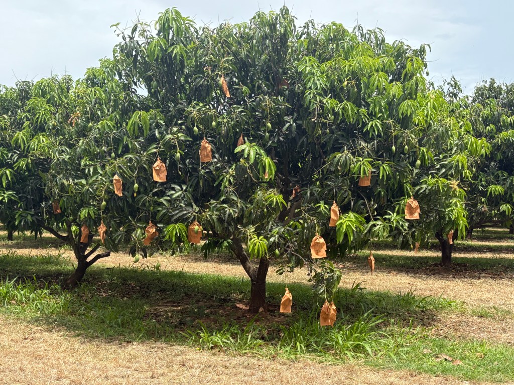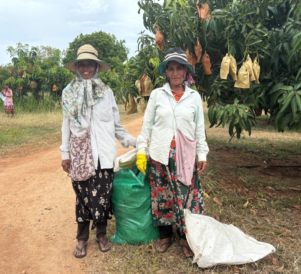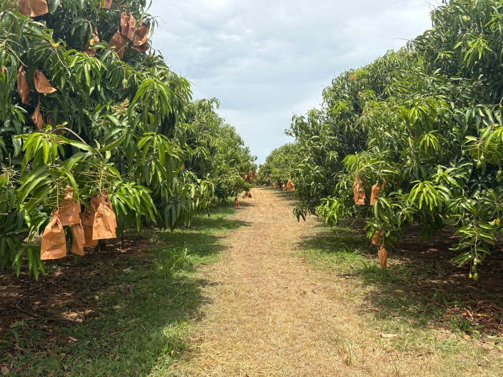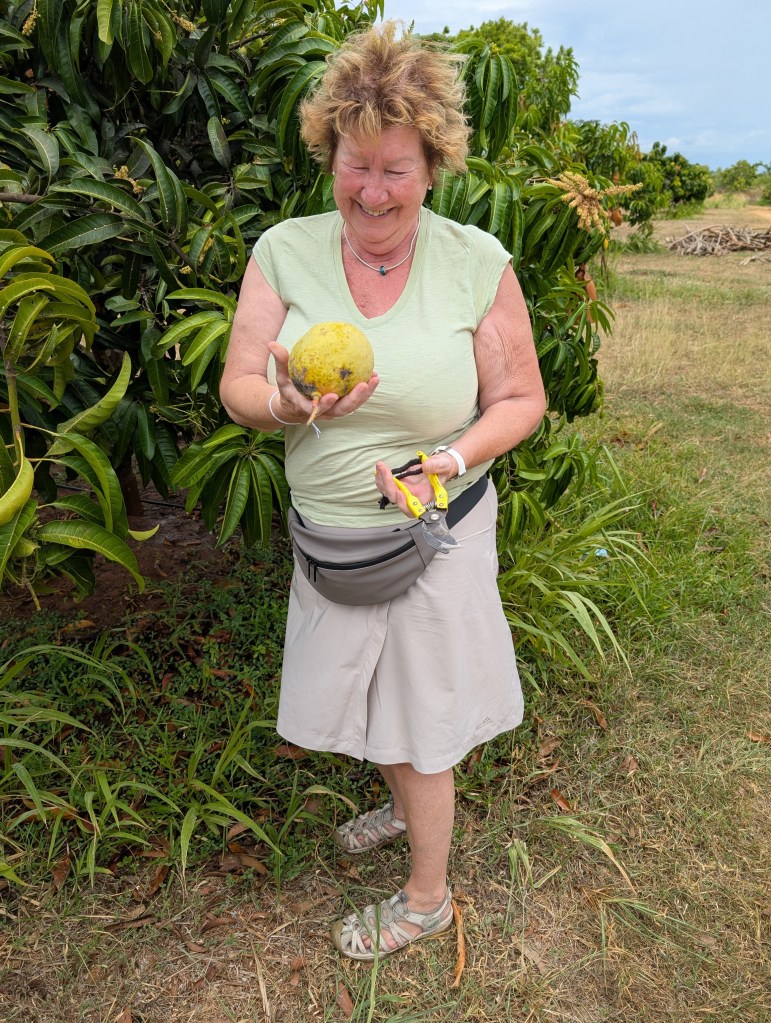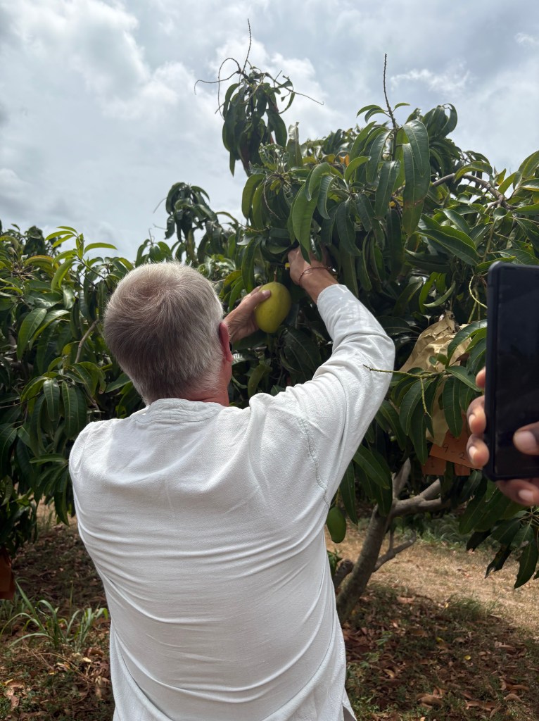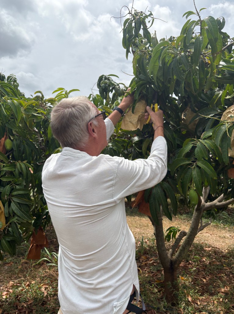 Vårt första stopp var en stor mangoodling där vi skördade mangos.