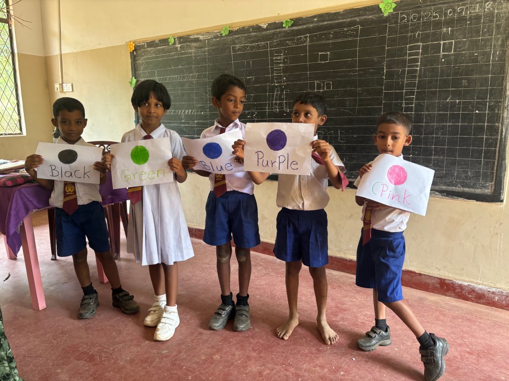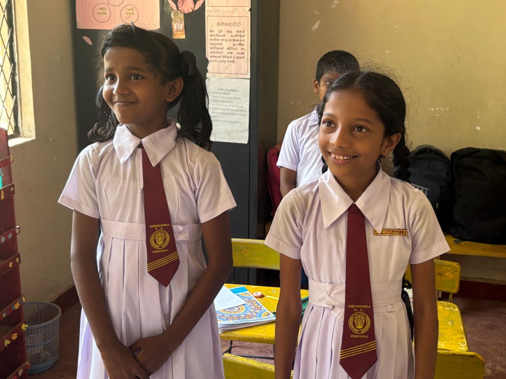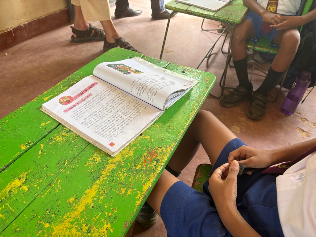 Sedan besökte vi en lågstadieskola där glada barn i fina skoluniformer nyfiket tog emot oss. Ute på skolgården skuttade en massa apor omkring.