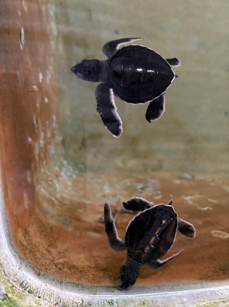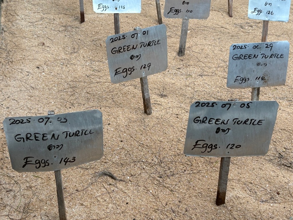 På kvällarna kommer sköldpaddorna till stranden och lägger sina ägg. Sedan försvinner de ut till havs. När äggen kläcks får ungarna klara sig själva.