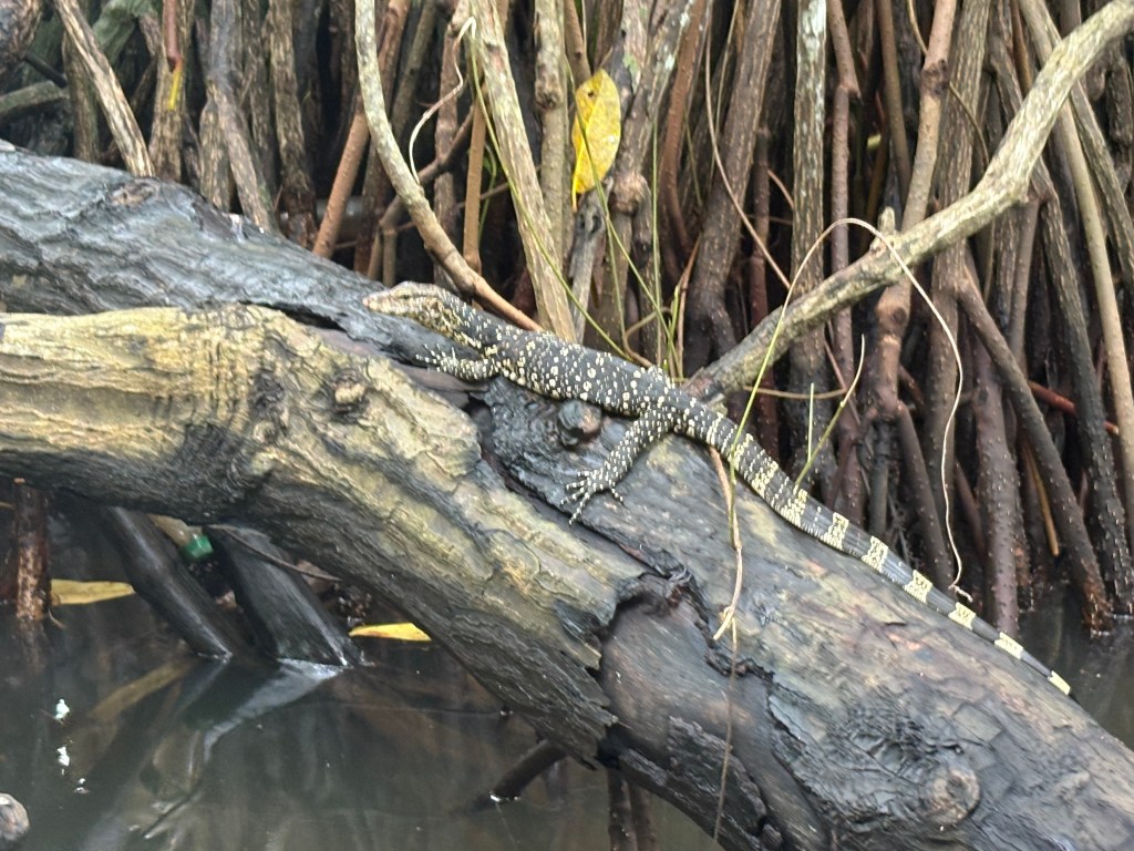 Snart satt vi i en tuk- tuk på väg till floden. Tarim blev vår guide när vi åkte bland mangrove, krokodiler och vackra fåglar.