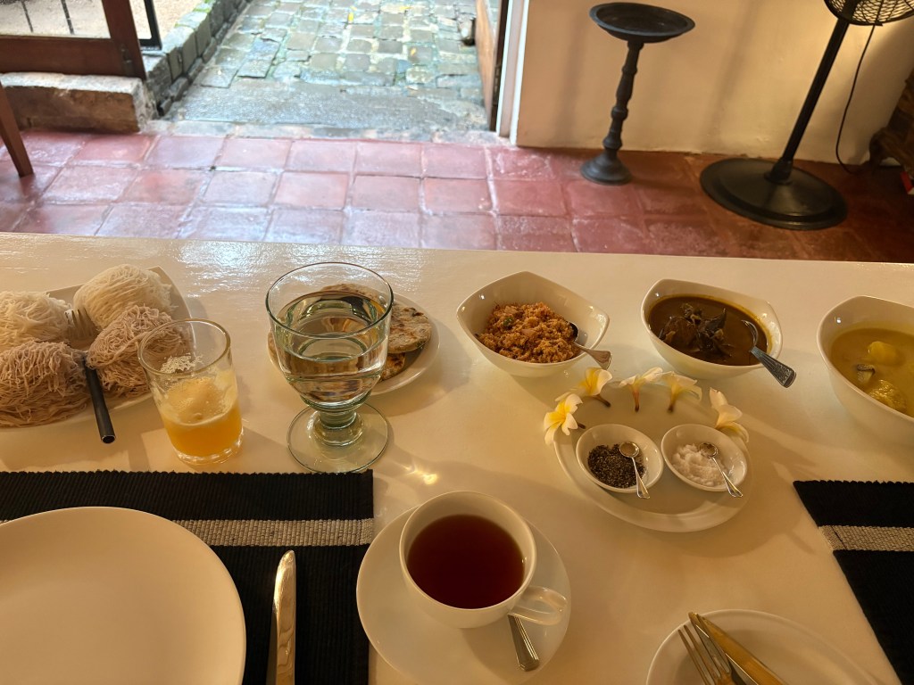 Att börja dagen med srilankesisk frukost vid Mr. Bawas matbord var inte fy skam!
