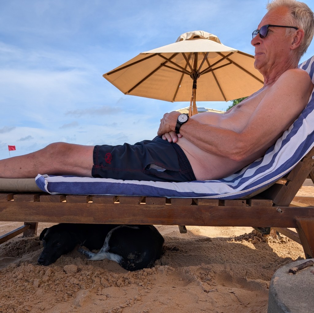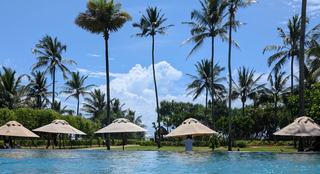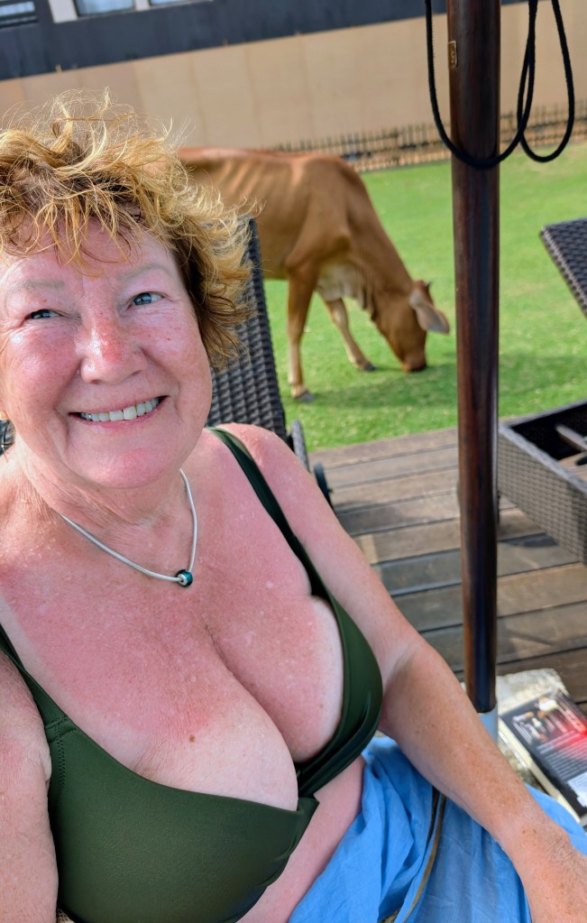 Resten av dagen har vi slöat vid stranden och vid poolen (där kossor används som gräsklippare)