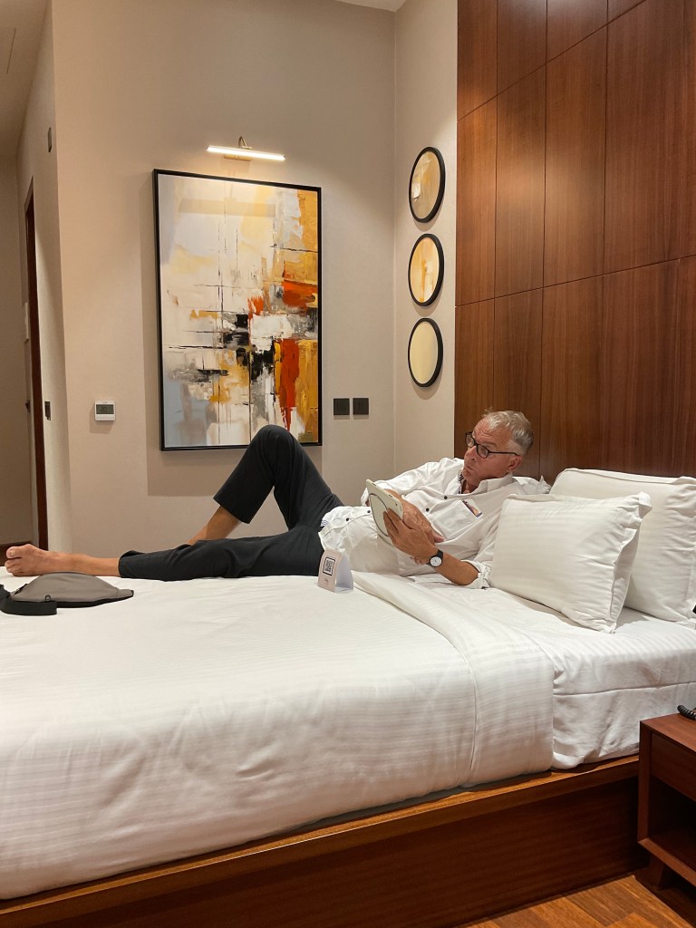 Så nu ligger vi i vårt fönsterlösa rum och läser. Klockan 04.25 startar sista etappen hem till Ekerö med en mellanlandning i Dubai.