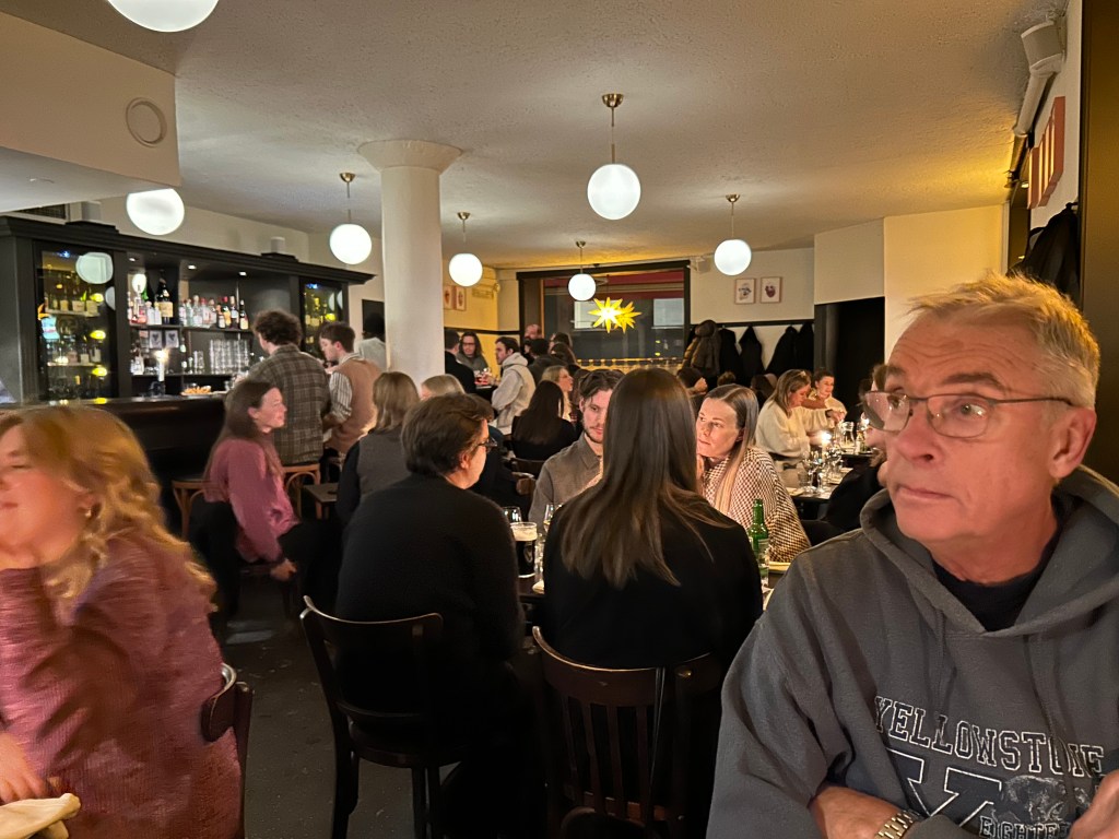 Så vi trotsade kylan och tog buss och tunnelbana till Skanstull och promenerade sista biten. Olle trodde att det skulle vara glest med folk dels för att det var så kallt men också för att det var trettondagsafton. Där hade han fel så det var tur att vi bokat bord.